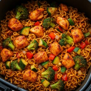 Airfryer-Asia-Pfanne mit YumYum-Nudeln, Hähnchen & Gemüse